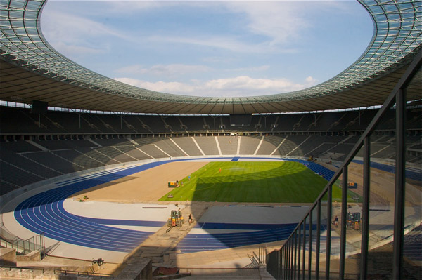 Bundesligaqualität, dicht, dunkelgrün, stark regenerationsfähig, sehr belastungsfähig, die weltbesten Sorten, mit Stollenwalze vortrainiert.
